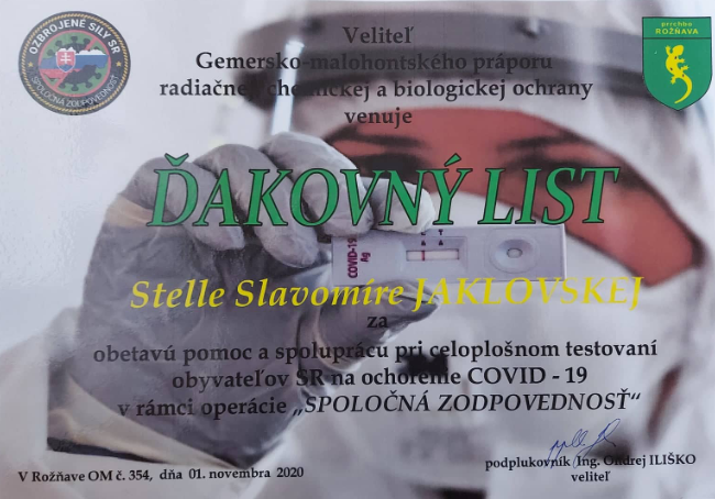 Ďakujeme študentom a pedagógom ošetrovateľstva z Rožňavského pracoviska bl. Sáry Salkaháziovej za mimoriadne nasadenie pri testovaniach.