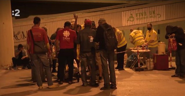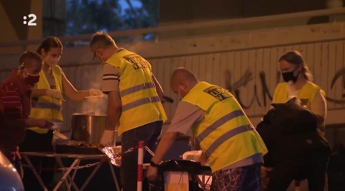 Poskytnutie teplého jedla ľuďom bez domova pod mostom Lafranconi